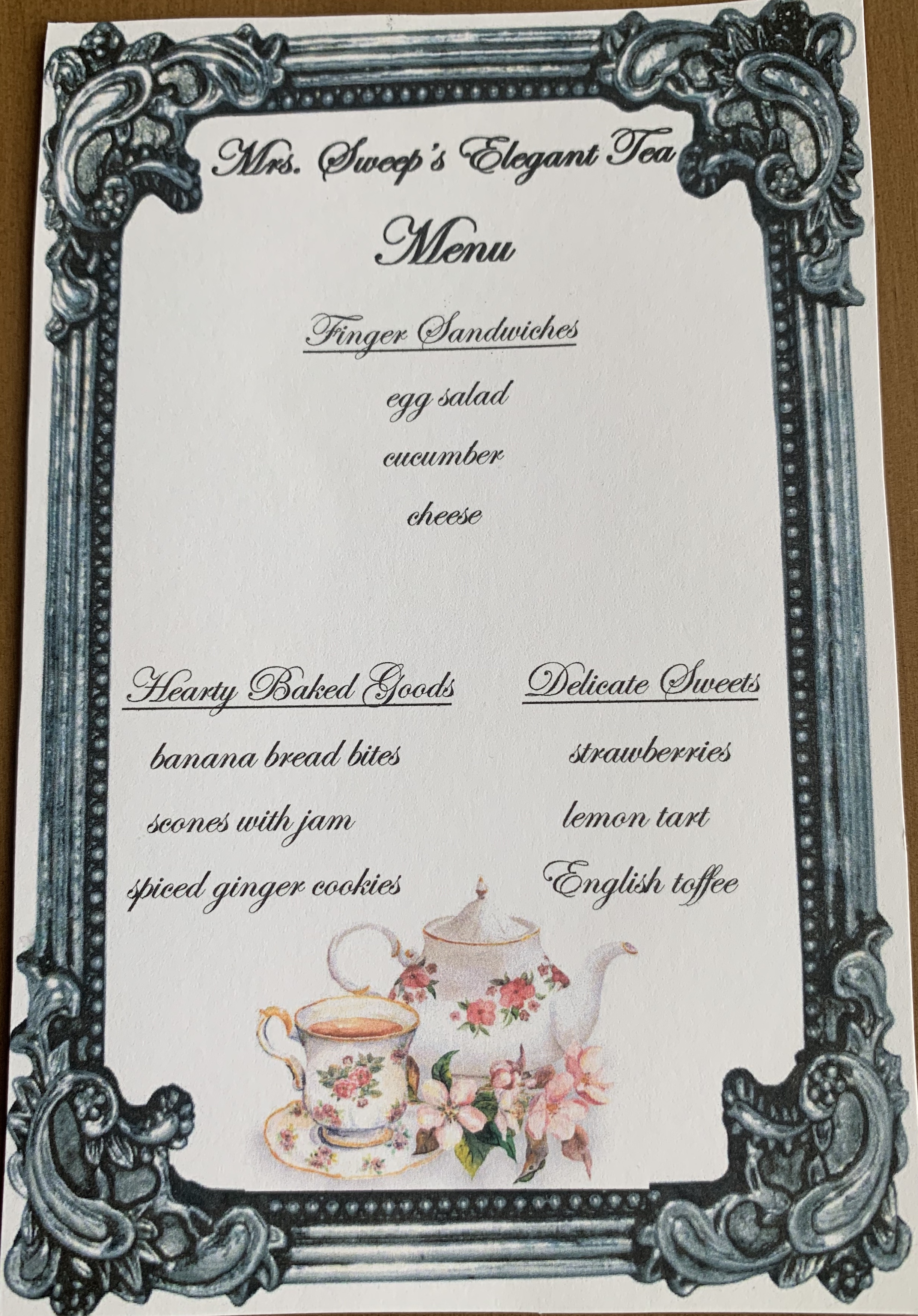 Prior to this event, we collected vintage table setting items that belonged to women with an historical connection to Aurora County. One unique aspect of this tea program is that every cup and saucer can be traced to a specific woman who had at one time lived in the county. We all enjoyed a marvelous afternoon!
