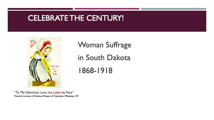 South Dakota History published my article on Woman Suffrage in 2020. It is now available to read online at: A Century Celebration: Woman Suffrage in South Dakota (1868-1918).